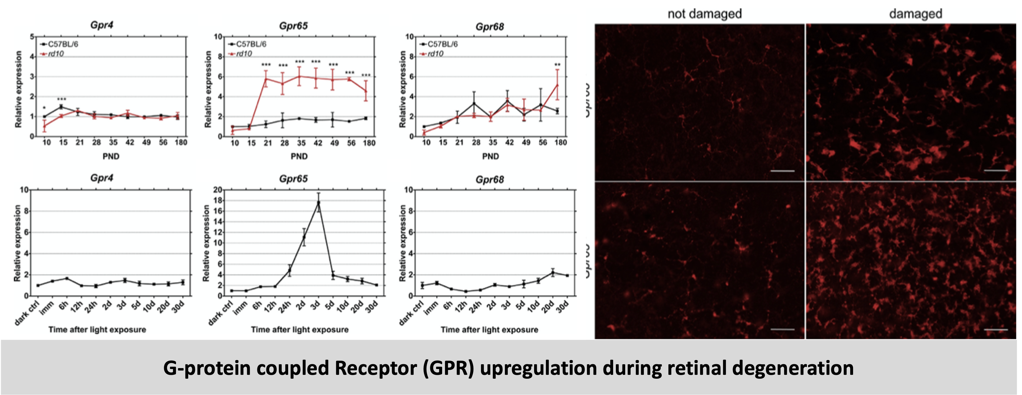 Increased expression of proton-sending G protein-coupled receptor Gpr65 during retina degeneration.